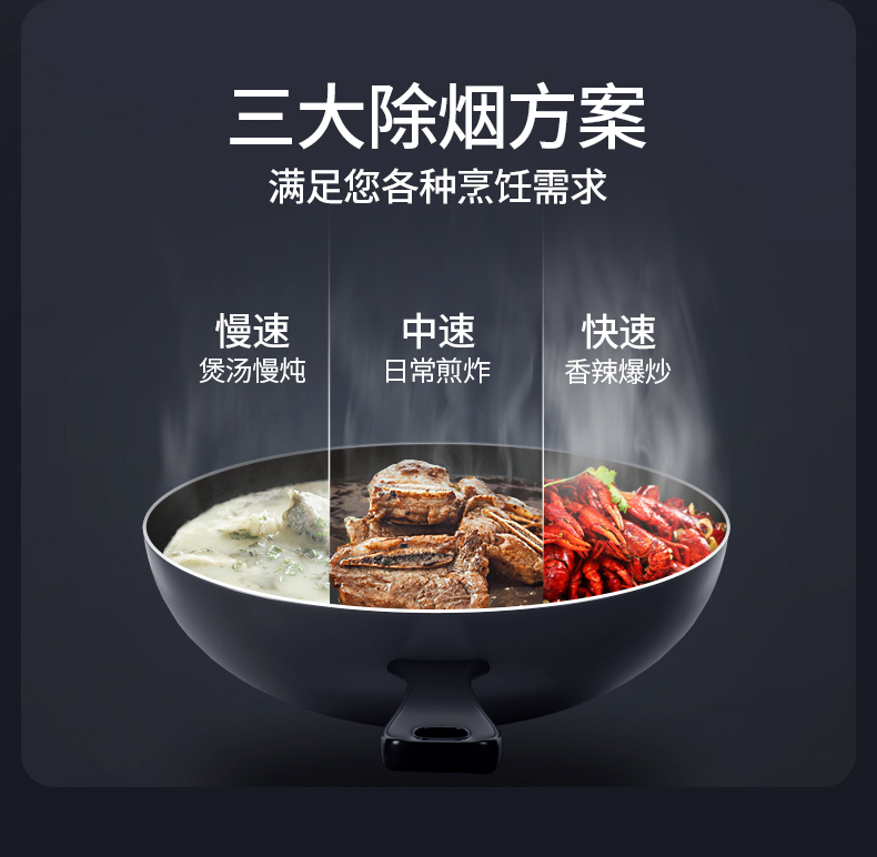3、专利MS气流组织设计,不跑烟,不进油。前置油烟分离,内腔无油不用清洗。